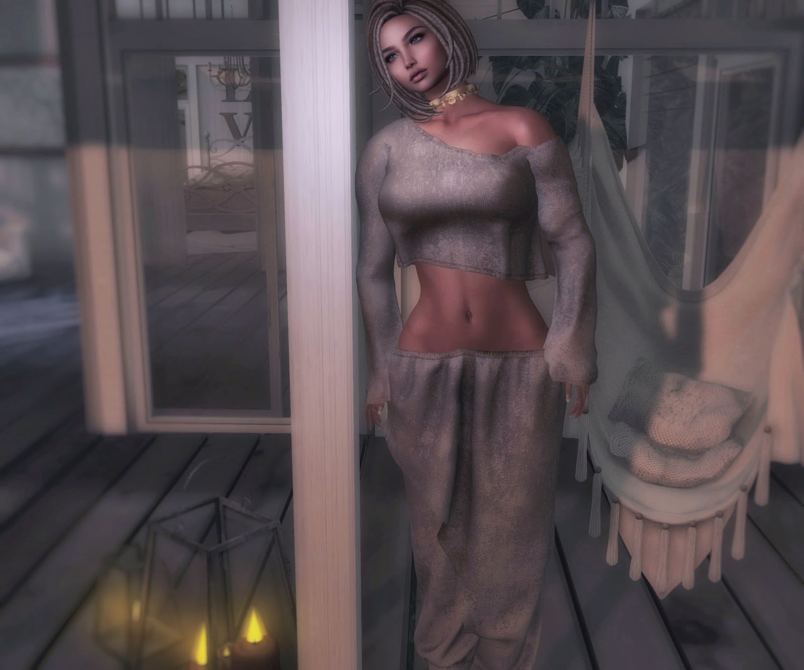 Outfit: Meva Off Shoulder Top + Harem Pants beige For Shiny Shabby Event New